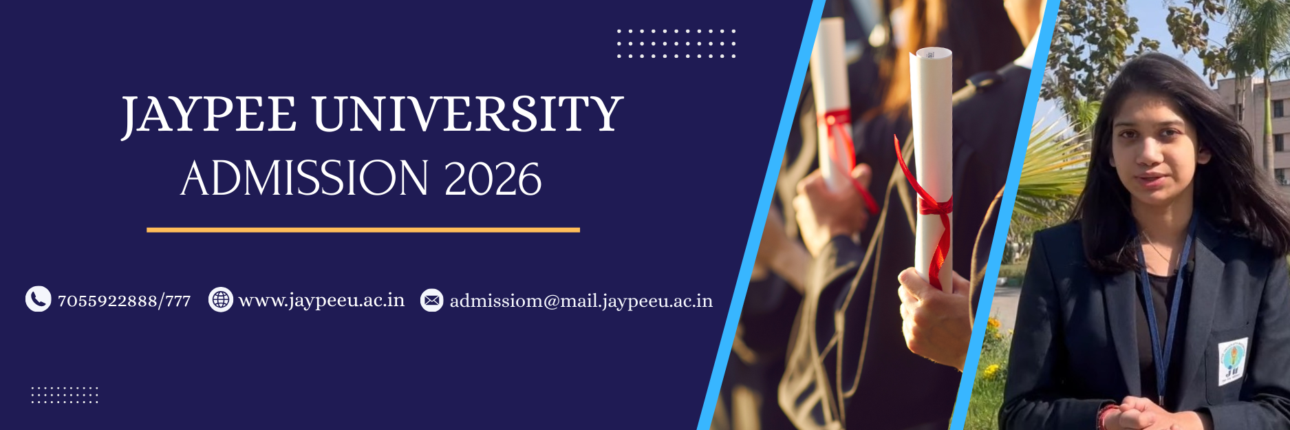 As you embark on the exciting journey from high school to university, our streamlined admissions process ensures a smooth start to your academic journey. Jaypee’s unique strength lies in its multidisciplinary curriculum, fostering well-rounded graduates. Thrive in a vibrant multicultural environment, gain a competitive edge, and stand out in the industry – apply to Jaypee University today!